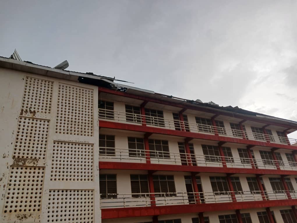 Three classrooms of the E-Block structure, a section of headmaster’s office, the Hot Kitchen structure were affected; and two Rambo size stand polytank and 12 ceiling fans in the classrooms were completely destroyed.
