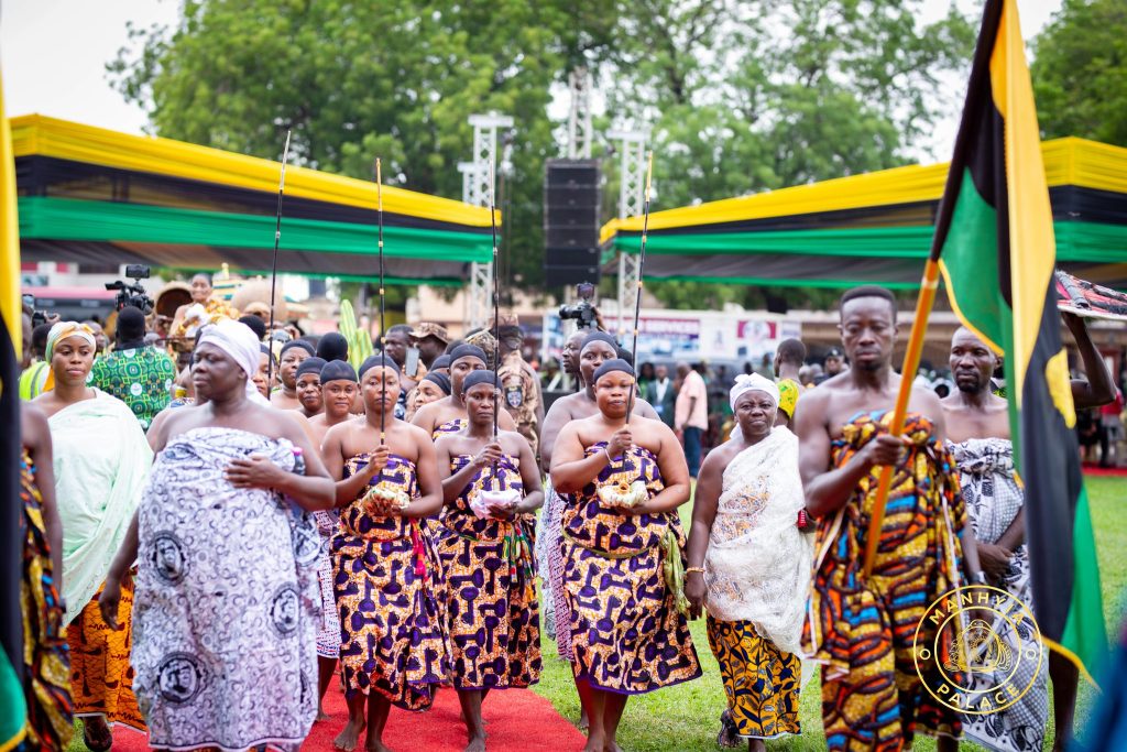 The palace grounds radiated with colour and majesty as over 50 paramount chiefs of Asanteman, each accompanied by a retinue of sub-chiefs, drummers, and dancers, assembled for the historic occasion.