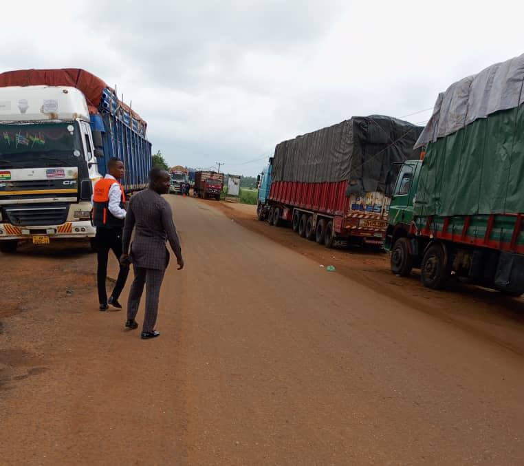 Wudoaba (VR), July 26, GNA-Officials of the National Disaster Management Organisation (NADMO) in the Ketu South Municipality of the Volta Region, have visited the Wudoaba-Segbe border and assessed the hazard posed by haulage trucks parked along the Tokor-Dzodze highway.
