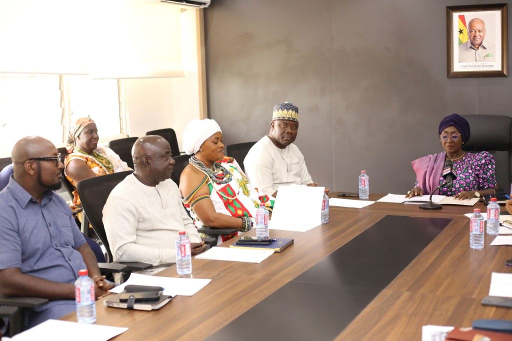 Board members include Madam Gomashie, Mr. Jajah, Mr Joseph Kwesi Amoah (Chief Director, MOTCCA), Madam Comfort Aki Dede Ashiagbor (Ministry of Education), Mr. Noah Tumfo (Ministry of Trade, Agribusiness and Industry), and Mr. Richard Gyasi (Ministry of Local Government, Chieftaincy and Religious Affairs).