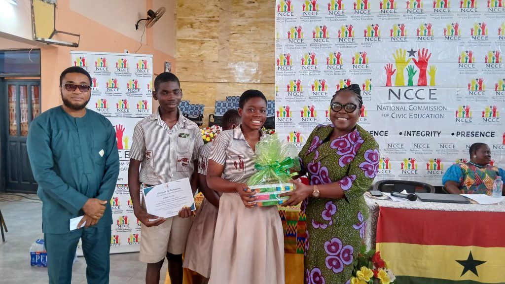 The event, held at the Pentecost Church Auditorium at Kasseh, brought together four schools, made up of two public and two privates, to test their knowledge on Ghana’s 1992 Constitution and promote civic awareness among young people.