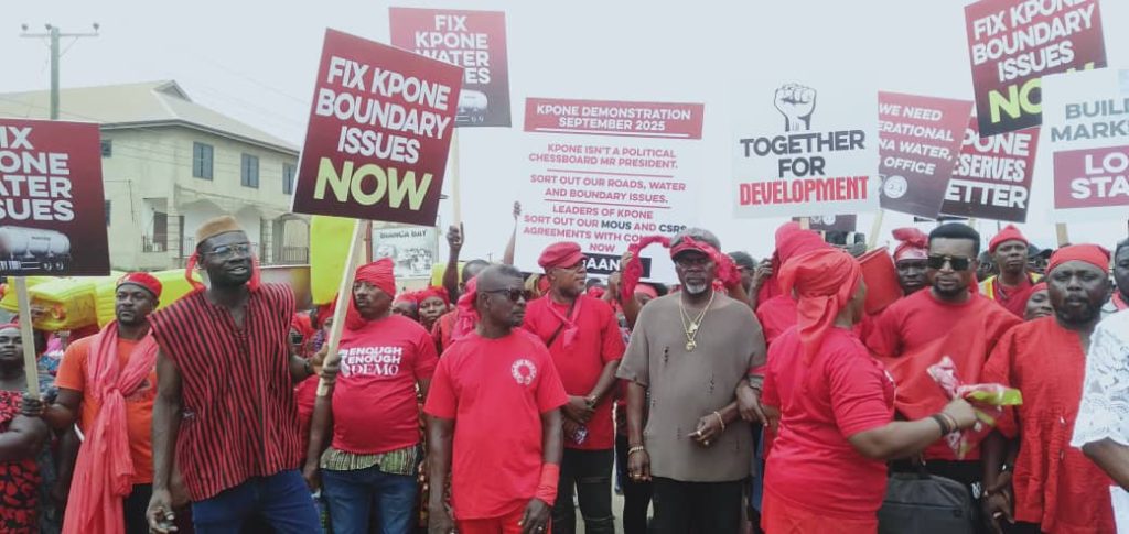 The demonstrators carried placards, some of which read, “Fix Kpone water issues”, “Fix Kpone boundary issues”, “Fix Kpone roads”, and “Kpone needs water, not excuses.”