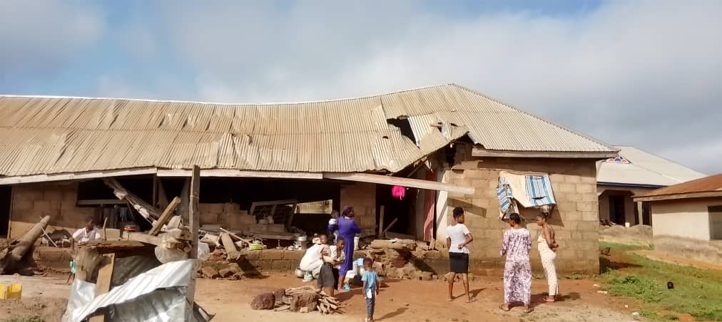 The rains, which accompanied incessant storms and lightning hit the community Tuesday evening October 21, 2025 and badly affected about 86 houses, ripped up classroom blocks and uprooted some trees in the locality.