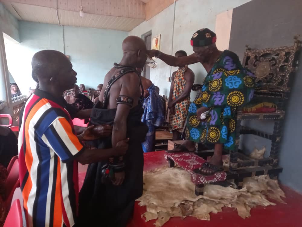 Per the tradition and custom of the area, Okokodurefo Hammah Ababio gave the new Omankrado a drink to drink to symbolise his installation and acceptance into the traditional council.