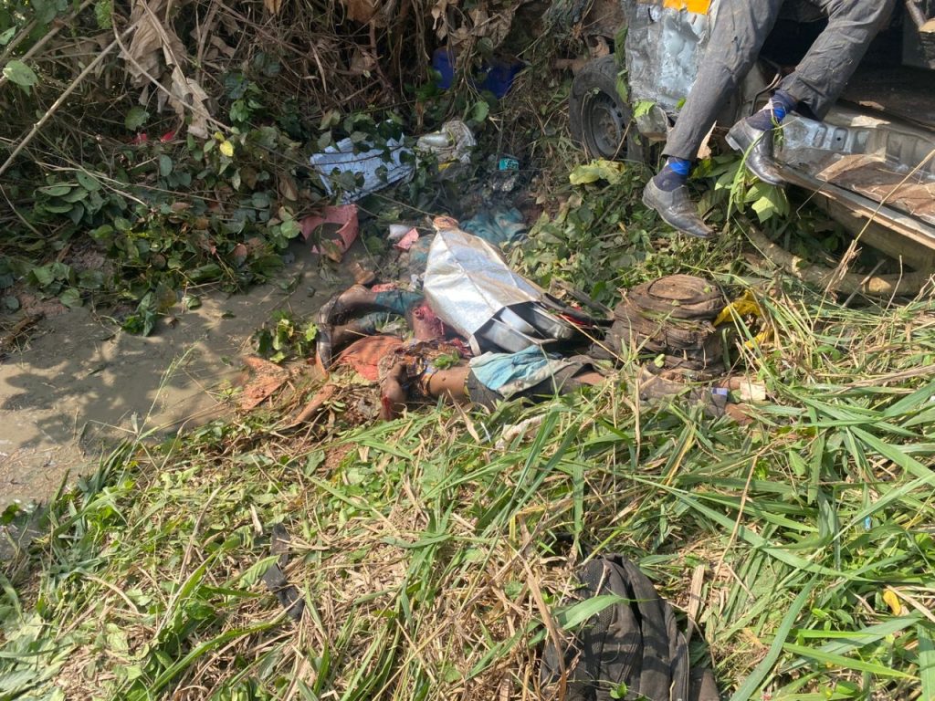 He said its rescue team from the Komenda Fire Station was quickly dispatched to the scene but upon their arrival, the crew found five lifeless, partially mutilated bodies trapped inside a Toyota Hiace bus with registration number GW-9873-22, that had veered off the road into bushes.