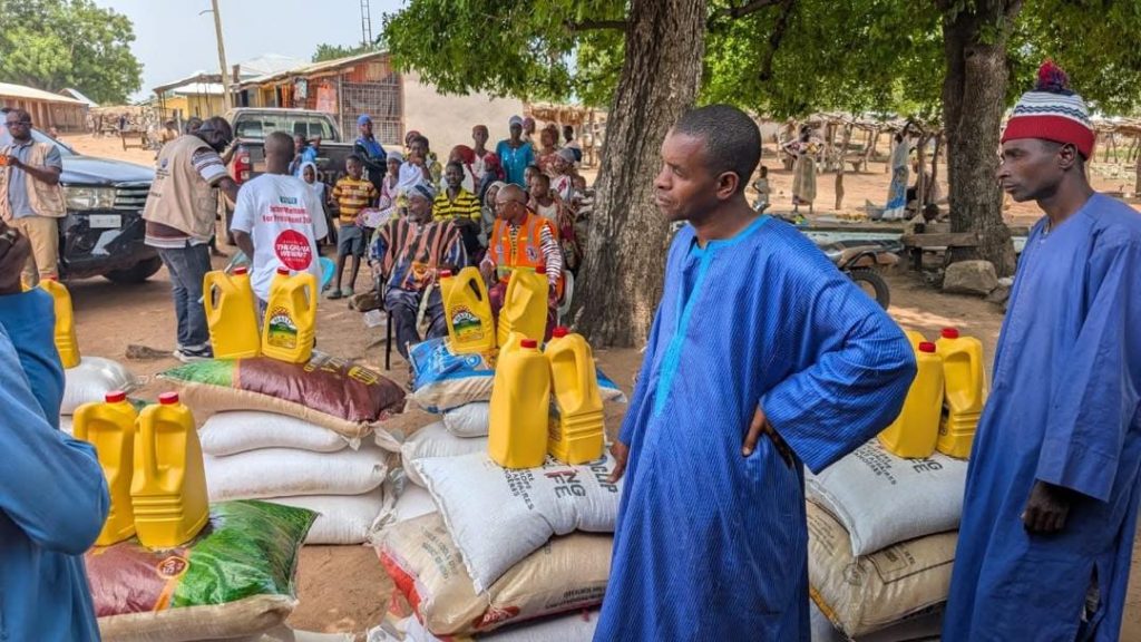 The items included 140 bags of maize, 70 bags of rice, 70 bags of cowpea (beans), 35 cartons of cooking oil, three bales of sleeping mats, and 11 bales of assorted used clothing, to address the immediate needs of affected families.